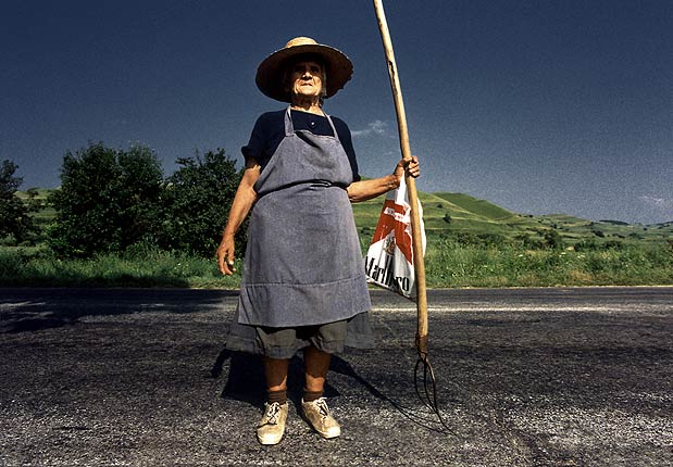 Empört schreit die ältere Dame zurück: