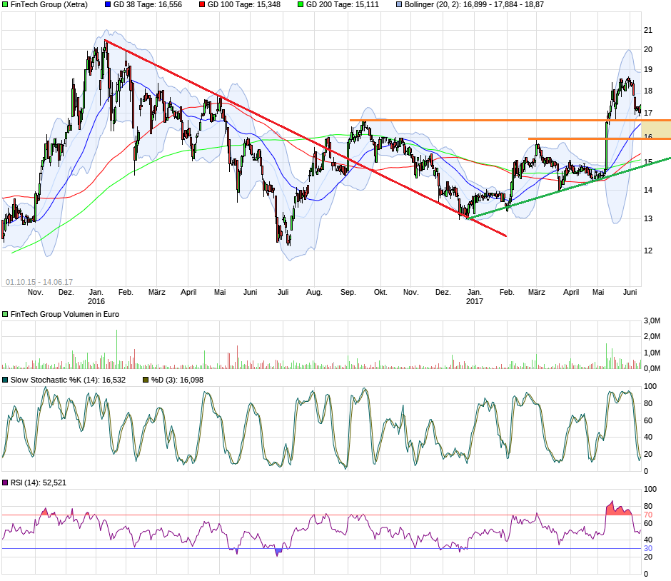 Technisch und fundamental halte ich weiter den Bereich 16,7-17,0 € für ein sehr gutes Kaufniveau. Man hat dazu noch etwas Puffer bis 16,0 €. Analystenkonsens aus 5 Analysten liegt bei einem EPS von 1,17 € fürs laufende und 1,37 € fürs kommende Jahr. Und ich glaub da ist noch Luft, wenn ich mir anschaue, dass man bisher die brach liegenden Finanzmittel bei der EZB geparkt hat statt sie teilweise zu risikoarmen Konditionen anzulegen.