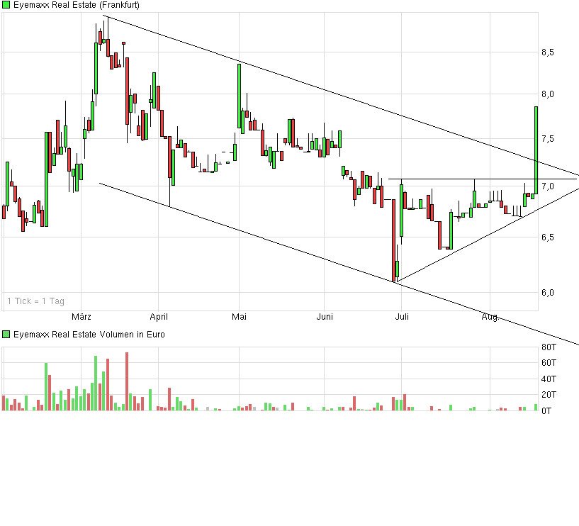 Eyemaxx zählt mit einer Marktkapitalisierung von ca. 22 Mio. Euro zu den Micro Caps unter den deutschen Immobilienaktien. Das Wachstum wurde seit 2011 durch die Emission von drei Anleihen, verzinst zwischen 7,88% und 7,5% p.a. finanziert. Weitere Anleihen werde man nun wohl keine mehr begeben, sagt Müller. Stattdessen werde Eyemaxx Kapital aus Verkaufsgewinnen reinvestieren. Auch Kapitalmaßnahmen seien in Zukunft möglich, wenn auch noch nicht konkret in Planung. "Wir möchten dadurch auch den Streubesitz der Aktie erhöhen." |