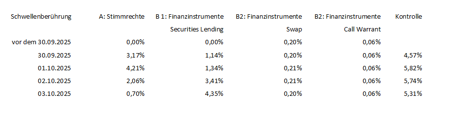 Gemini sagt dazu: Die Zurechnung von Stimmrechten erfolgt dennoch aufgrund der potenziellen Kontrolle oder des Einflusses, den das Instrument auf die Aktie ausüben kann, und wird für die Schwellenüberwachung gemeldet.