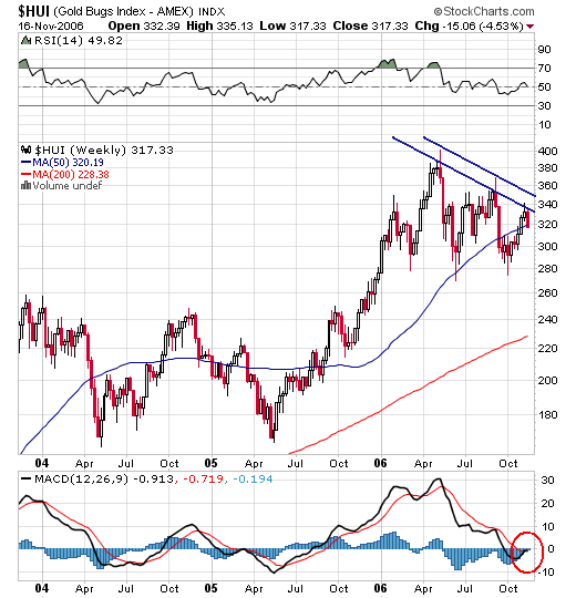 Die Minenaktien (Gold Bugs Index) sind aber noch nicht mitgezogen.
