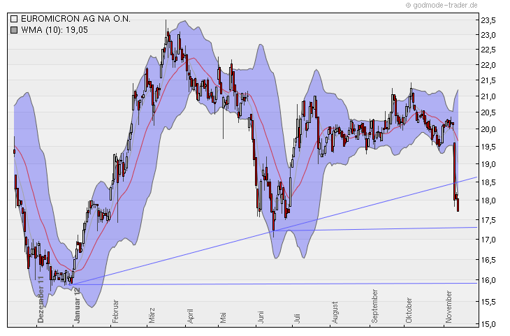Der Wachstumskurs von euromicron hat sich im ersten Halbjahr eindrucksvoll fortgesetzt. Der Umsatzzuwachs lag hier bei annähernd 20 %. Ein Großteil des Wachstums ist auf die Übernahme von telent zurückzuführen, da die Gesellschaft im Juni 2011 erstmalig konsolidiert wurde. Die deutliche Umsatzausweitung ging einher mit einer leichten Verbesserung der EBITDA-Marge auf 9,0 %. Infolge der im vergangenen Jahr getätigten Übernahmen erhöhten sich die Abschreibungen um über 1,5 Mio. EUR auf 4,03 Mio. EUR. Wir sehen die euromicron AG auf einem guten Weg unsere Prognosen für das laufende Geschäftsjahr 2012 zu erreichen. Die Integration der telent GmbH verläuft nach unserer Einschätzung planmäßig. Wir erwarten daher unverändert einen Umsatzanstieg von 12,3 % auf 343,00 Mio. EUR sowie ein EBIT von 27,86 Mio. EUR. Damit liegt die EBIT-Marge innerhalb des vom Management angestrebten Korridors zwischen 8 und 11 %. Bis 2015 strebt das Management einen Umsatzanstieg auf 500 Mio. EUR an. Neben weiteren Akquisitionen sollte das Unternehmen von einer anhaltend hohen Investitionsbereitschaft von Netzbetreibern sowie öffentlichen und industriellen Kunden profitieren. Eine moderne Netzwerkinfrastruktur ist vor dem Hintergrund neuer Anwendungen, wie z. B. Cloud Computing, eHealth, Videostreaming-Dienste oder Smart-TV, unverzichtbar. Die derzeitige Bewertung der euromicron AG erscheint mit einem 2012er KGV von leicht über 8 sowie einem 2012er EV/EBITDA von unter 6 attraktiv. Zudem beläuft sich die erwartete Dividendenrendite auf rund 6 %. Im Rahmen unseres DCF-Modells haben wir ein unverändertes Kursziel in Höhe von 30,50 EUR für die Aktie der euromicron AG ermittelt. Ausgehend vom aktuellen Aktienkurs sehen wir folglich noch ein Kurspotenzial von rund 50 %. Damit bestätigen wir unsere Kaufempfehlung für die Aktie der euromicron AG. Die vollständige Analyse können Sie hier downloaden: http://www.more-ir.de/d/11719.pdf Quelle: GBC AG |