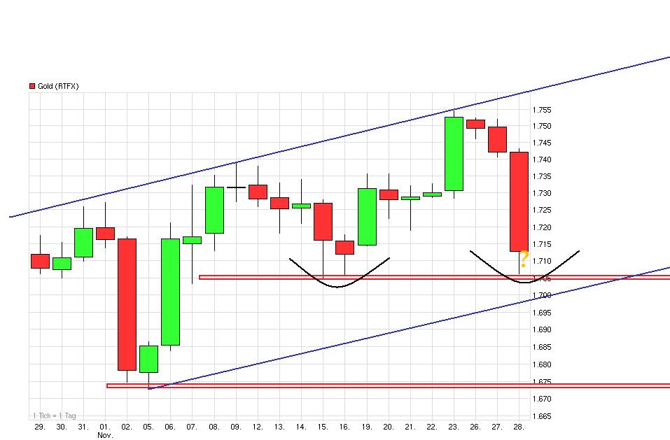 In der letzten Woche überraschte uns der Bund Future etwas, denn der Rücksetzer fiel sehr deutlich aus. Zwischenzeitlich lieferte der Chart zwar grundsätzlich noch keine neuen Erkenntnisse und das Szenario eines letzten Anstiegs bleibt weiterhin gültig, dennoch sinkt die Wahrscheinlichkeit dieser Prognose. Für das langfristige Bild spielt diese Struktur sicherlich keine Rolle, denn hier ist der breite, abwärts gerichtete Trendkanal richtungsweisend. Er lässt – im Zusammenspiel mit anderen Methoden der technischen Analyse – Kurse von 136,00% im nächsten März vermuten. Die Rendite der zehnjährigen Bundesanleihe würde dann bei etwa 2,00% rangieren. Die zwischenzeitlichen Bewegungen können wegen der angesprochenen Breite des Kanals unterdessen sehr erratisch ausfallen. Bei Betrachten des Intraday-Charts kann eine bevorstehende und kurzfristige Bodenbildung in den kommenden Tagen angenommen werden. Sollte das Rentenbarometer anschließend bis zu seinem letzten Hoch anziehen und anschließend wieder abfallen, ließe sich ein Ziel von etwa 140,50% (zehnjährige Bund-Rendite von aktuell 1,43% auf ca. 1,65%) bis zum Jahresende berechnen. Eine solche Bewegung entspricht momentan dem wahrscheinlichsten Szenario und würde auch zu dem Bild passen, dass die zehnjährige US-Rendite zeigt. In den nächsten Sitzungen kann sie zwar etwas abgeben, wird dann aber vermutlich wieder anziehen und in einer ersten Welle bis etwa 1,85% ansteigen. Erst wenn die Sätze in den kommenden Tagen unter 1,58% fallen, macht die US-Rendite einen Strich durch die Rechnung der Bären. Viel Hoffnung auf eine solche Entwicklung haben wir aber nicht, denn das Indikatoren-Bild stellt sich uneinheitlich dar. Besonders im hiesigen Chart wundert die Wende des RSI, der in der Regel zuvor eine negative Divergenz zeigt. Die Tatsache, dass diese Divergenz fehlt, lässt übergeordnetes Abwärtspotenzial vermuten. Fazit: In den kommenden Handelstagen dürfte der Bund Future nochmals zulegen. Der Widerstand bei 143,50% hat sich jedoch als sehr markant herausgestellt, so dass Kurse über dieser Marke unwahrscheinlich sind. Nach dieser kurzen Phase erwarten wir zudem ein nachgebendes Rentenbarometer und Niveaus von etwa 140,50% bis zum Jahresende. Quelle: WGZ-Bank