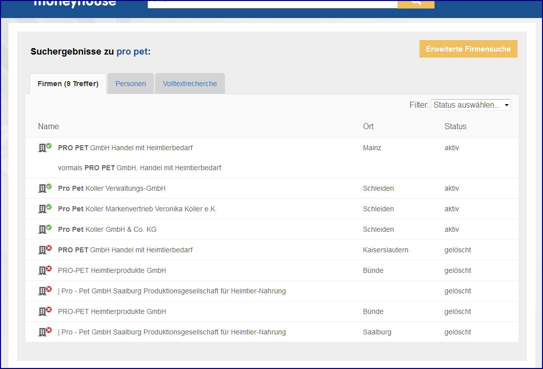 Also nun zu meine Recherche bezgl. der Pro Pet Koller GmbH & Co. KG