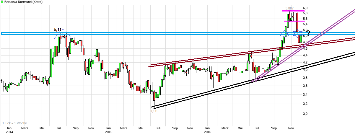 Wie wenig kurzfristige sportliche Resulatet Einfluss auf den Kursverlauf haben, hat man doch sehr eindrucksvoll im Oktober gesehen, als sich trotz aller Pleiten der Kursanstieg sogar noch beschleunigte, oder auch umgekehrt, als im letzten Jahr der Kurs auf eine sehr gute Saison so gut wie gar nicht reagiert hat (und nebenbei auch nicht auf diverse andere positive Entwicklungen).