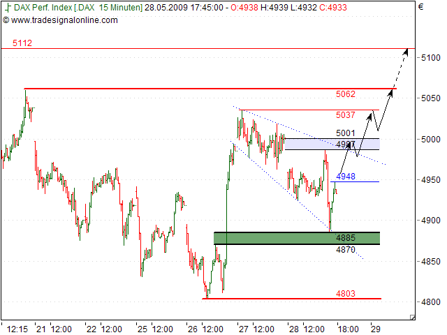 man sollte gut drauf achten, ob es zu einer topbildung kommt im bereich 5039/5062 und ob die 4968 im tagesverlauf gehalten werden können.