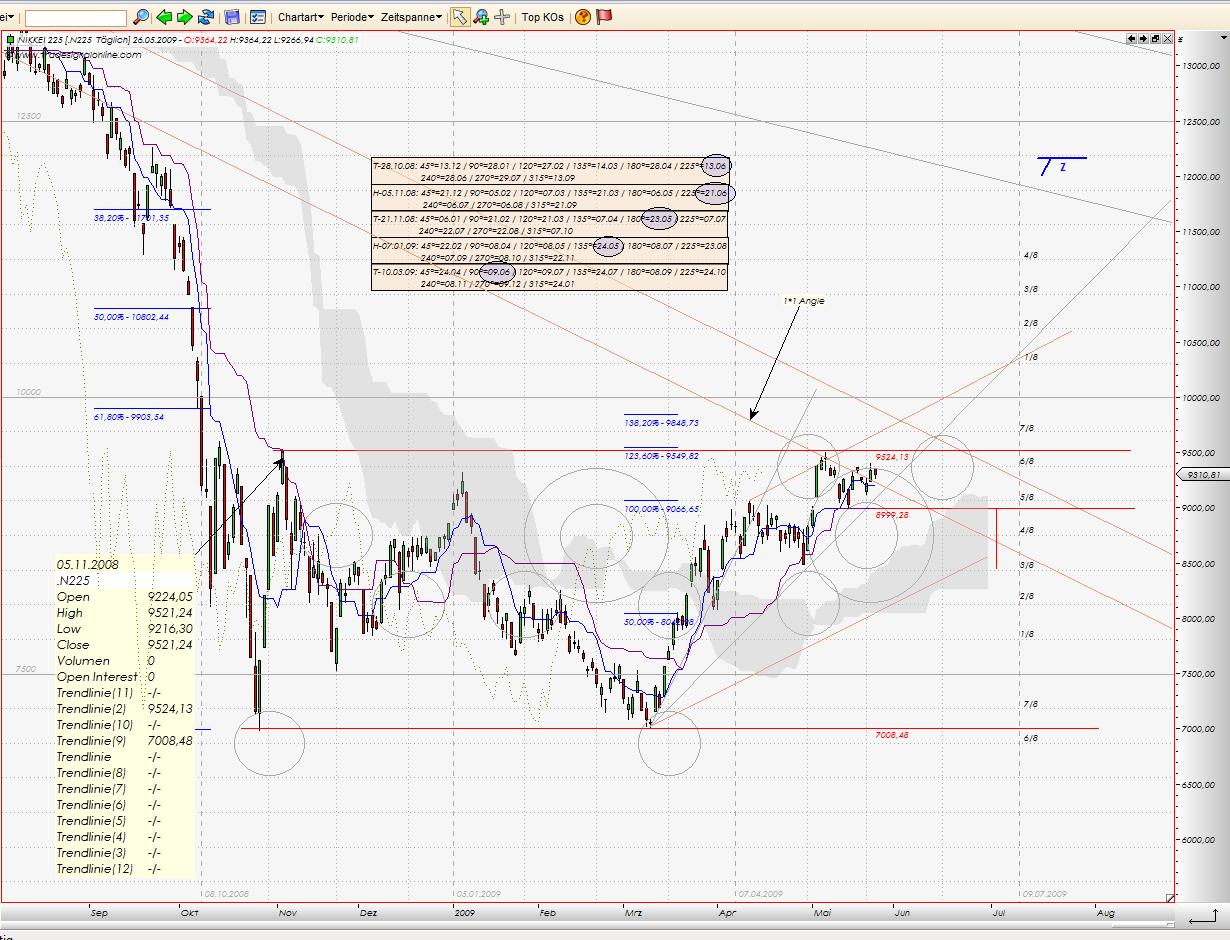 Beim Nikkei würde ich zunächst abwarten, bis eine gerichtete Bewegung wieder auftaucht, derzeit ist das (seit 08.05) entweder Konsolidierung oder Nikkei macht sich bereit für eine Korrektur, was eigentlich für alle Indizien zutrifft. Diese Korrektur, meiner Meinung nach, ist jetzt schon seit Woche fählig.