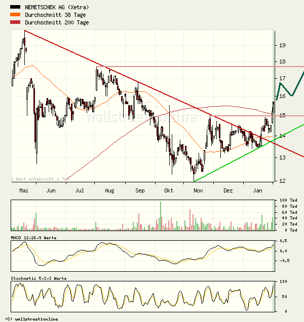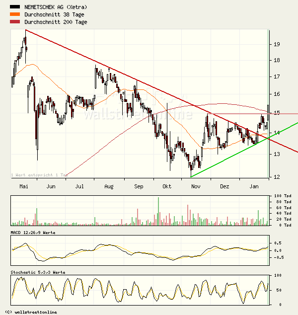 Die Aktie von Nemetschek notiert aktuell mit einem Plus von 0,33 Prozent bei 15,30 Euro