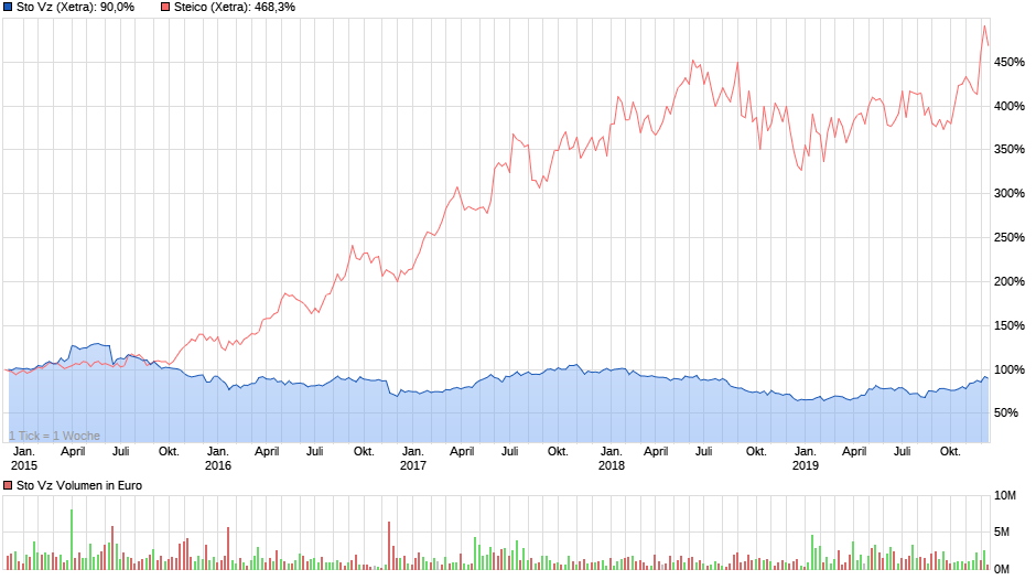 am 11.12.19 hatte ich mir den hinweis erlaubt, dass der börsianerliebling Steico SE im verhältnis zur Sto SE & Co. KGaA überbewertet und die riskantere aktie ist