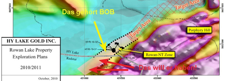 Als ich gelesen habe, daß Sie am südlichen Rowan auf eine neue Goldader mit völlig neuen Strukturen gestoßen sind, so wie es am Red Lake noch nie gefunden wurde (Strukturmäßig!), habe ich als erstes den gedanken gehabt, daß es über der Grenze weitergehen muß und das ein idealer Claim für HyLake dazu wäre!