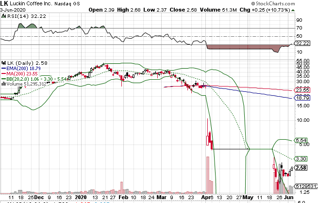 | Luckin Coffe ist unter den US-Anlegern eine sehr beliebte Aktie. Das siehst du daran, dass es an der Nasdaq täglich ein sehr hohe Handelsvolumen gibt. Ich rechne hier mit einem Verdoppler, weil ich von einem gap close bei ca. 4,80$ ausgehe. Sollte der Kurs übrigens per Wochenschlusskurs darüber beenden, wären sofort 10,00$ das nächste Kursziel. Mir sind die fundamentalen Hintergründe bewusst und es ist sicherlich keine Aktie für die Altersvorsorge. Aber Luckin ist eine der beliebtesten Zocker-Aktien in den USA, schau einfach mal in die USA-Foren rein. In einigen Tagen wird der Q1-Bericht veröffentlicht und auch über den Verbleib an der Nasdaq entschieden. Ich glaube an eine positive Überraschung, zumal die aktuelle Börsenbewertung meiner Ansicht nach extrem niedrig ist. Bin am überlegen, ob ich die nicht wie Wirecard einfach länger behalte. Zweistellige Kurse sind nicht unrealistisch, wenn es keine bösen Überraschungen gibt. |