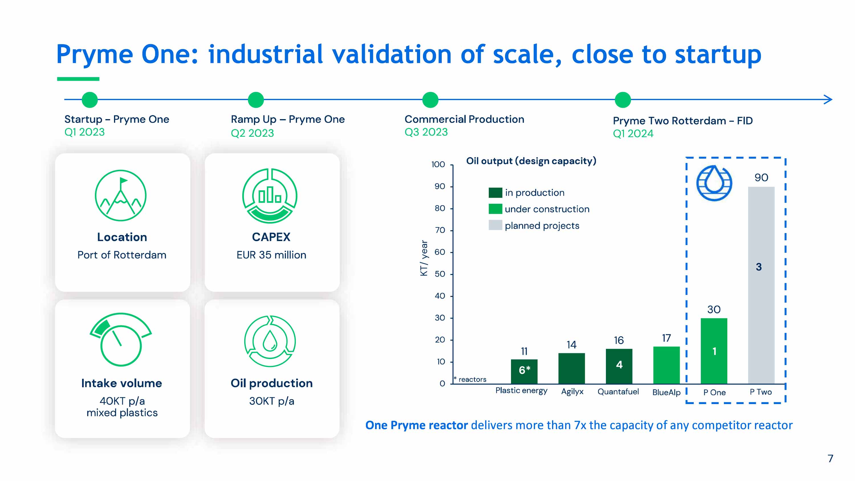 wer den führerschein neu macht kauft sich doch auch nicht gleich ein porsche sondern fängt klein an.so ist es bei pryme auch. wenn die anlage fehlerfrei läuft, eventuelle probleme behoben sind dann kann man die erkenntnisse und verbesserungen im werk 2 nutzen.dieses schafft dann die 3-4 fache menge an plastik.