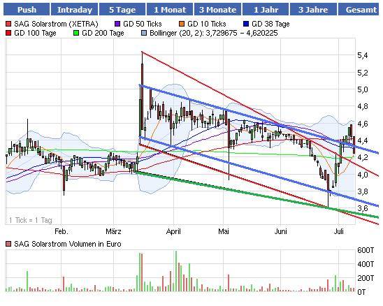 S.A.G. Solarstrom: Die S.A.G. Solarstrom AG gehörte in den letzten beiden Jahren zu den ganz wenigen Wachstumsunternehmen, die tatsächlich eine Dividende gezahlt haben. Für 2009 haben wir eine Dividende von 10 Eurocent gezahlt, für 2010 werden wir zum 15. September eine Dividende von 12,5 Eurocent zahlen. Und wir haben klar signalisiert, dass wir eine nachhaltige Dividendenpolitik verfolgen. Wir wollen, dass unsere Aktionäre am Erfolg des Unternehmens sowohl durch die Wertsteigerung im Unternehmen - und hier haben wir beachtliche Werte in den letzten Jahren geschaffen, alleine unser eigener Kraftwerkspark verfügt über einen Marktwert von über 80 Mio. EUR - als auch durch Dividendenzahlungen partizipieren.