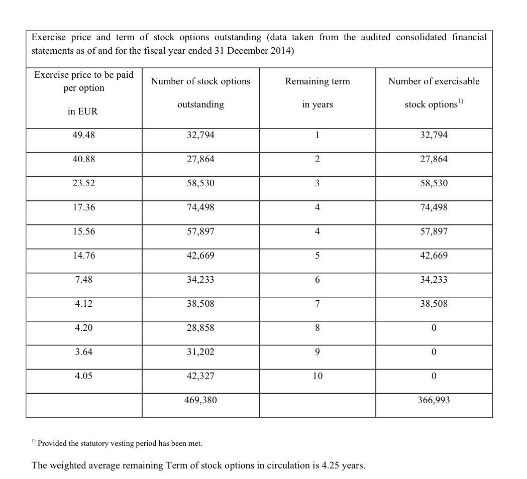 "Die Verpflichtung der Baader Bank zur Übernahme der Neuen Aktien steht unter dem Vorbehalt, dass die Baader Bank Rechtsgutachten erhält und die Gesellschaft übliche Gewährleistungen gegenüber der Baader Bank übernimmt (wie Gewährleistungen im Hinblick auf gesellschaftsrechtliche und Compliance Themen sowie zur finanziellen Situation der Gesellschaft). Die Baader Bank hat sich ferner das Recht vorbehalten, von ihrer Verpflichtung zur Übernahme der Neuen Aktien zurückzutreten, wenn außergewöhnliche und unabwendbare Ereignisse wie Unsicherheiten an den internationalen Kapitalmärkten, das Ausbrechen von Feindseligkeiten und ähnliche Ereignisse eintreten, die nach Ansicht der Baader Bank eine Durchführung der Kapitalmaßnahme als nicht empfehlenswert erscheinen lassen. Die Verpflichtung der Baader Bank endet ferner, wenn die Durchführung der Neuen Kapitalerhöhung nicht bis zum Ablauf des 7. Juli 2015 in das Handelsregister des Amtsgerichts München eingetragen worden ist und sich die Gesellschaft sowie die Baader Bank nicht auf einen späteren Termin einigen können.