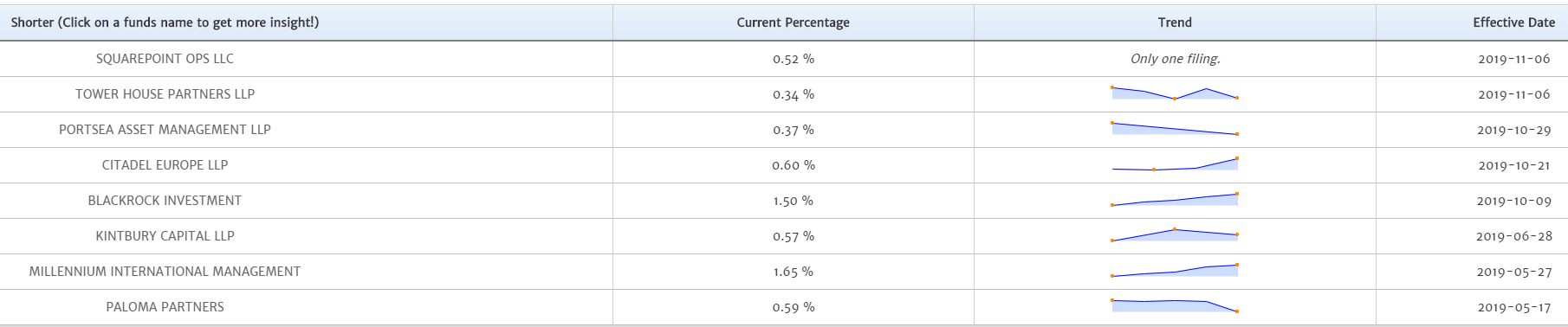 Am Freitag hat wohl noch der HF Squarepoint Ops LLC die LV-Position von 0,52% auf 0,46% reduziert.
