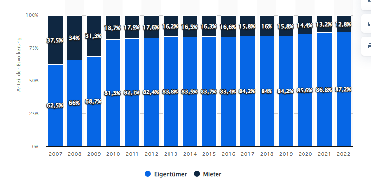 Im Osten, in kleinen und mittleren Städten wurde vor kurzem noch für 5 Euro kalt vermietet. Bei um die 4 % Prozent Leerstand. Jetzt sind wir bei 5,80 Euro, plus 20 %, in vielleicht 2 bis 3 Jahren. Da ist so viel Platz, wenn da keine Zuwanderung kommt, wird zurückgebaut (abgerissen). Kleiner Scherz, aber wir wissen ja nicht wie sich der Osten in den nächsten Jahren entwickelt.