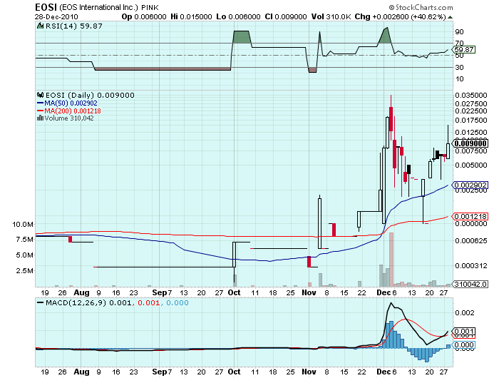 | ür heute. wenn ich mir den letzten run ansehe, war die erste größere kerze am tagesende auch wieder ein wenig zusammen geschrumpft. und die folge tage waren der kracher. da hast du recht. heute ist eosi ein STRONG BUY. chart technich sieht das für heute einfach super aus. und an alle die denken das volumen sei zu gering, werden sich noch wundern, was hier für ein vol. möglich ist. siehe 8 mio. letzten monat zwischen 0,025-0,035. bringt eosi seine jahres zahlen fliegen wir hier bis 0,1-0,2. da ist das hier alles erst der anfang. die arbeiten mit Dell microsoft zusammen und haben bis 11.2010 über 80 neu kunden gewonnen. das werden riesige zahlen. wer kein geld verdienen will, muss weiter zu den gängigen explorer buden gehen, die nur dilution betreiben und vom RS leben. explosion folgt. und wir sind drin. tolles invest hier. ohne dumping.... gefällt mir |