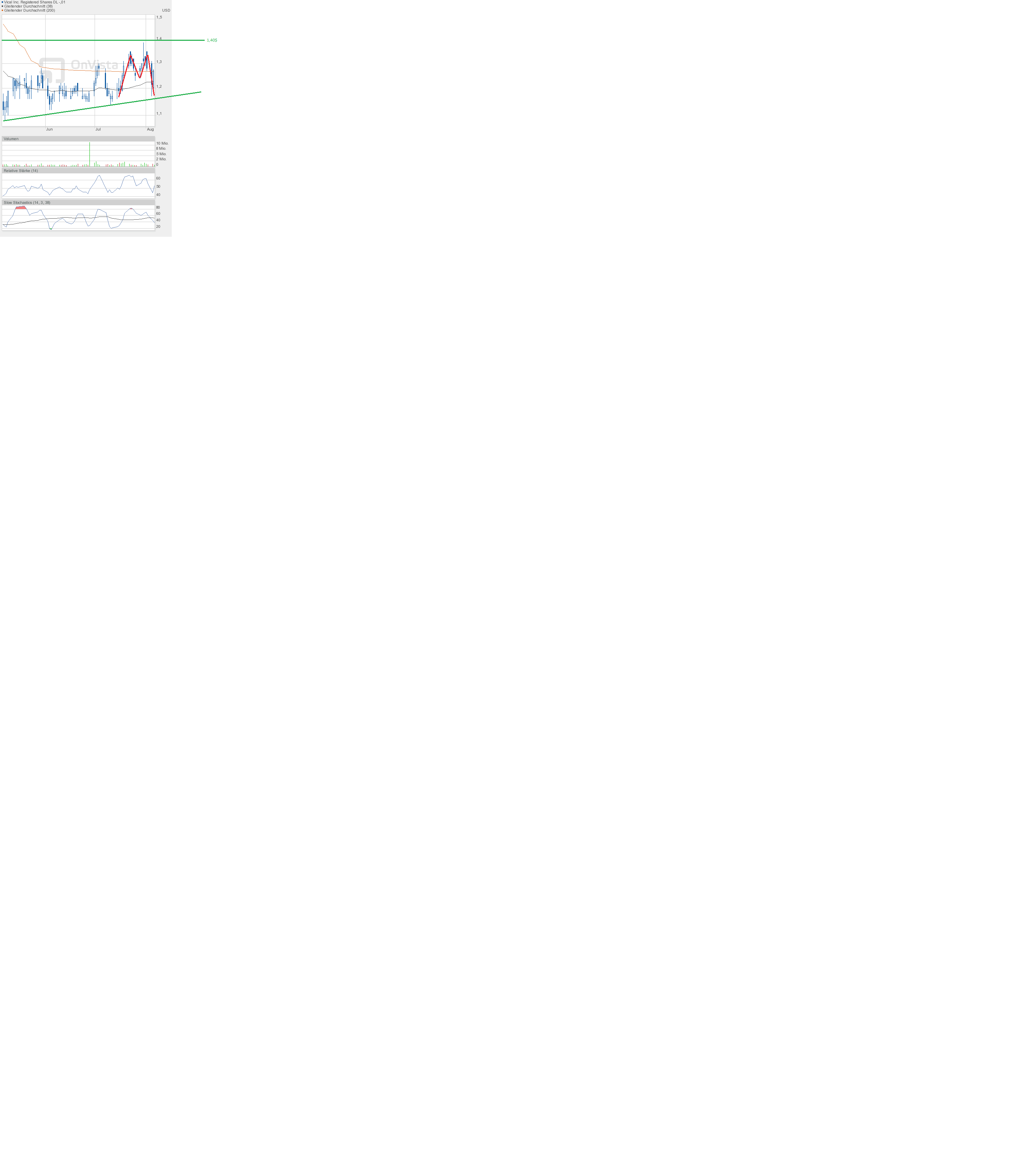 Den Versuch, die Kreuzung der 38-Tage- und 200-Tage-Linie zu verhindern, haben wir gestern tatsächlich gesehen. Tagestief 1,23$. Dabei hätte es auch schnell unter 1,20$ gehen können - ging es aber nicht. Um so schöner, dass die Aktie zum Handels- und Wochenschluss nochmal hochgekauft wurde. Schlusskurs 1,27$ auf Tageshoch, und damit über der 38-Tage- und 200-Tage-Linie. Die Indikatoren stehen weiterhin neutral, aber knapp über wichtigen Marken, was positiv erscheint. Damit ist die Kreuzung bei Durchschnittslinien nicht mehr zu verhindern, es sei denn am Montag brechen die Börsen crashartig ein, eher unwahrscheinlich. Für nächste Woche muss es das Ziel sein, irgendwie über 1,30$ zu kommen. Dann wäre auch 1,40$ denkbar, die Schlüsselmarke. Darüber erwarte ich einen Crash - nach oben. |