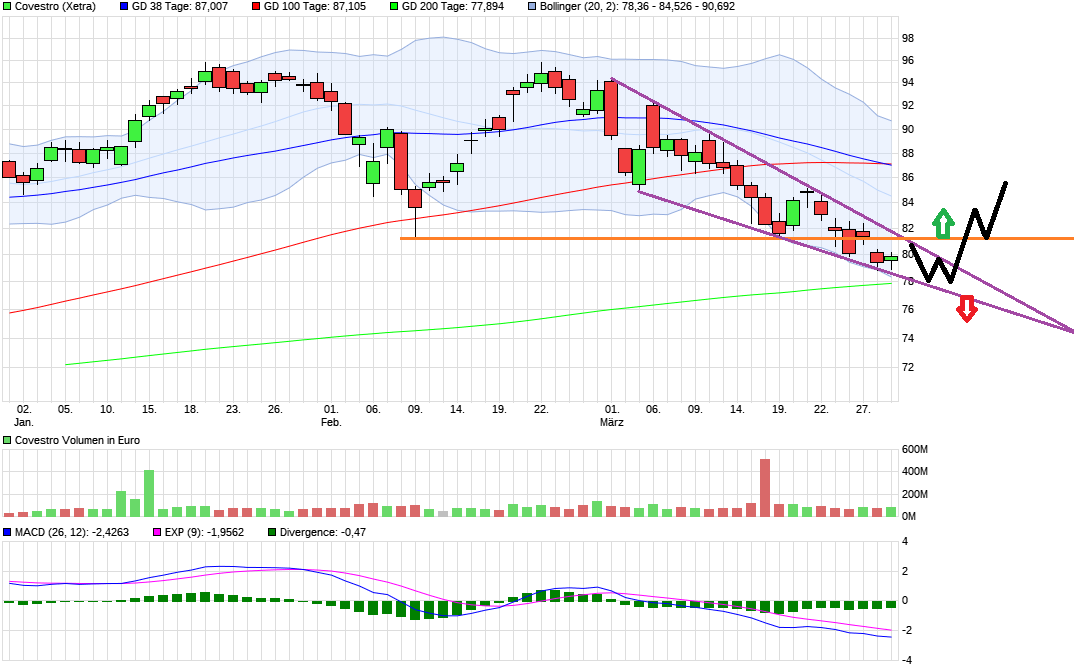Man muss halt jetzt mal gucken, ob man wieder die 81,5 € Marke überwindet. Dann würde es Kaufsignale geben.
