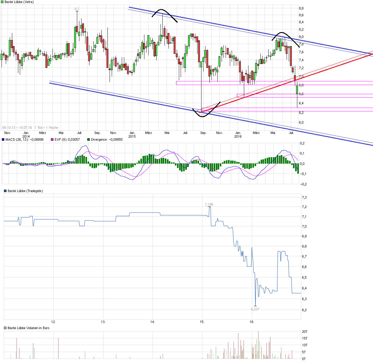Was ich damit sagen will: Sollte man davon ausgehen, dass der Artikel der Wirtschaftswoche dem Unternehmen Bastei Lübbe nicht nachhaltig schadet und sich eher auf die operativen Aussichten konzentrieren, dann sind die Kurse von heute, auch wenn man wie ich etwas vorsichtiger auf die ein oder andere Entwicklung bei BL schaut, sicher nach unten übertrieben.
