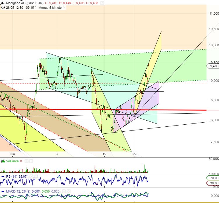 Der Bezugspreis je neuer Aktie wird voraussichtlich am 26. Juni 2015 unter Berücksichtigung des volumengewichteten Durchschnittskurses (VWAP) der Medigene AG im elektronischen Handelssystem XETRA der Frankfurter Wertpapierbörse vom Beginn der Bezugsfrist bis zum Handelsschluss des 25. Juni 2015 abzüglich eines möglichen und noch festzusetzenden Abschlags festgelegt. Der maximale Bezugspreis wird EUR 9,50 betragen und berücksichtigt damit den VWAP der letzten 30 Handelstage vor der heutigen Bekanntmachung. Der endgültige Bezugspreis wird voraussichtlich am 26. Juni 2015 im Bundesanzeiger und auf der Internetseite der Medigene AG (www.medigene.de) veröffentlicht. Die im Rahmen des Bezugsangebots nicht bezogenen Aktien werden im Rahmen von Privatplatzierungen Investoren in Europa und den USA zum Erwerb angeboten. Medigene strebt aus der Kapitalerhöhung einen Bruttoemissionserlös in Höhe von ca. EUR 40 Mio. an. Ich denke, dies ist nun für alle verständlich!! |