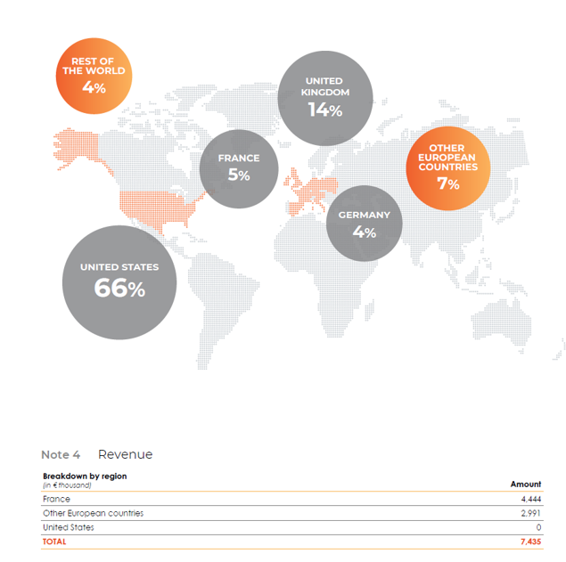 Seite 6: 66% des Umsatzes entfallen auf die USA, 5% auf Frankreich, kein Umsatz in China.