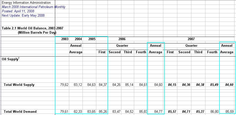 Supply/Demand von 2003 bis 2007 rauskopiert. Ich kann aus den Zahlen keine