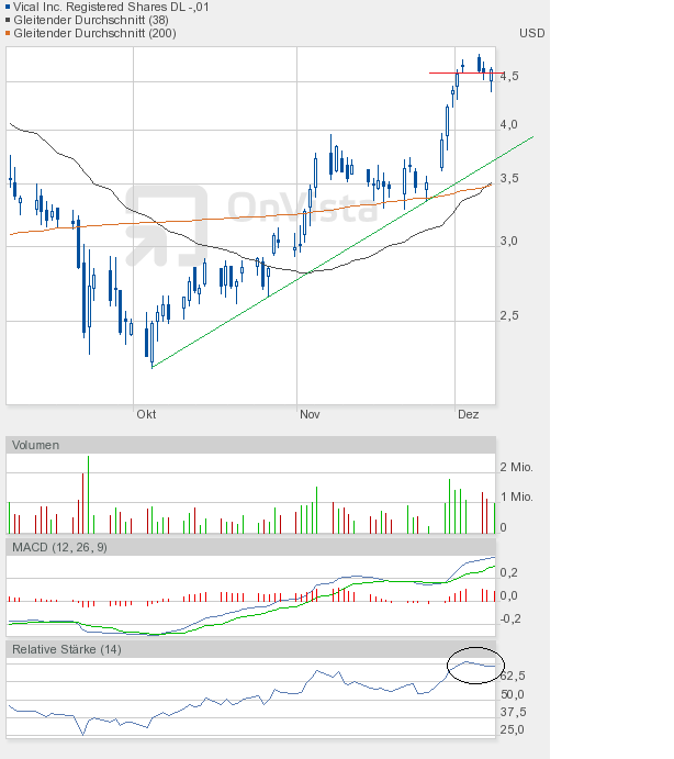 Für einen weiteren Rücksetzer heute spricht die Tatsache, dass Vical auf Tagestief geschlossen hat.