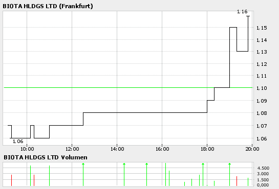 Biota shares jumped as much as eight per cent to an intraday high of $1.85, before trimming back to $1.795, up 4.97 per cent, or 8.5 cents.