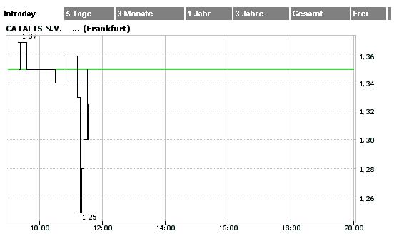 Uhrzeit Kurs Volumen 12:16:38 1,35 10.000 12:15:25 1,35 10.000 12:14:24 1,35 10.000 11:21:50 1,34 0 11:15:30 1,34 900 11:00:37 1,36 1.500 09:53:04 1,33 900 09:42:02 1,35 8.000 09:40:07 1,35 5.000 09:32:36 1,33 0 09:23:38 1,34 10.000 09:09:49 1,33 0