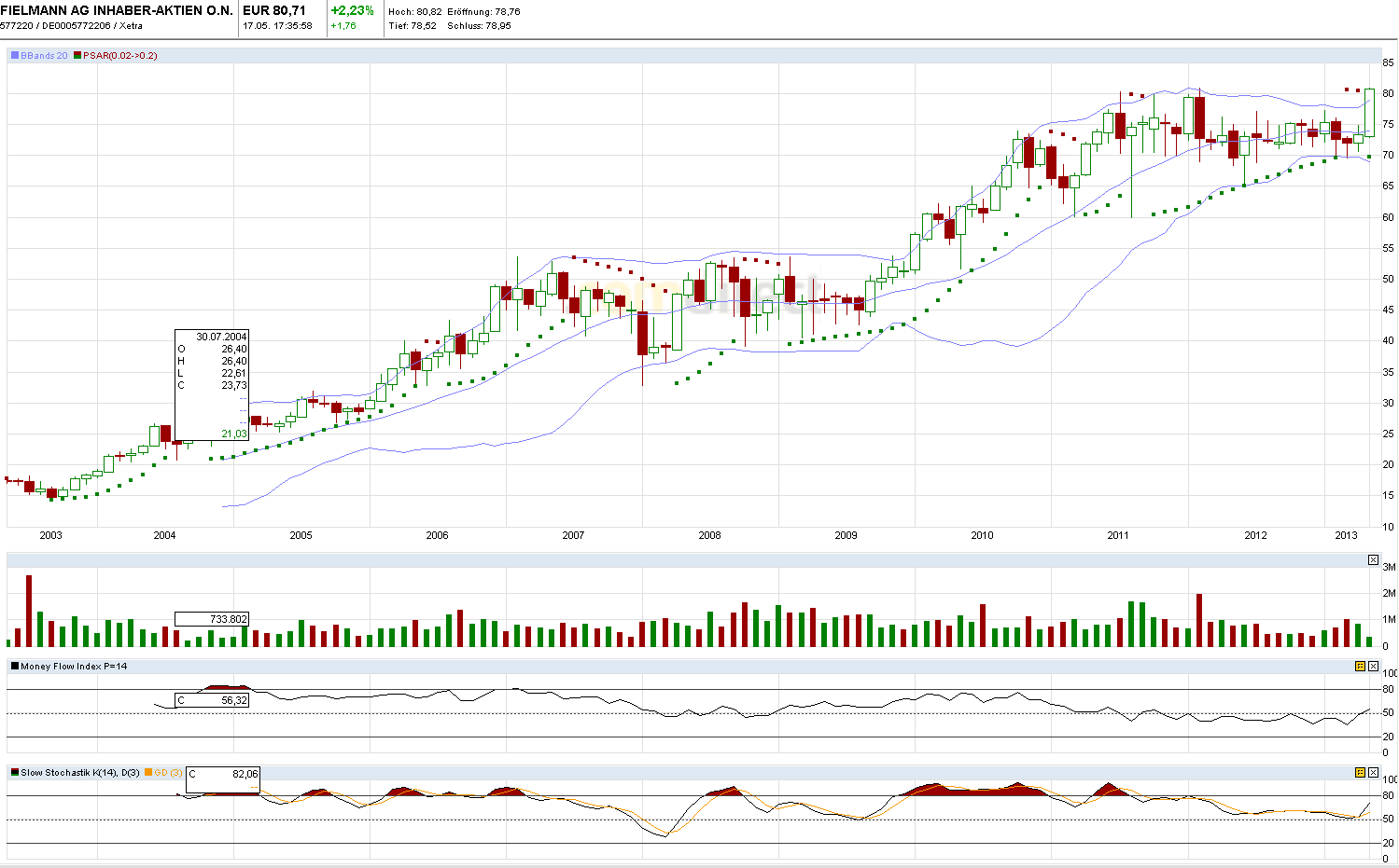 Fielmann setzt seine seit Jahren aktionärsfreundliche Dividendenpolitik fort. Aufsichtsrat und Vorstand empfehlen der Hauptversammlung am 11. Juli 2013, für das Geschäftsjahr 2012 auf Grund positiver Unternehmensentwicklung und vorhandener Liquidität eine Dividende in Höhe von 2,70 Euro je Aktie auszuschütten (Vorjahr: 2,50 Euro). Ein Grund für unseren Erfolg sind kompetente, engagierte Mitarbeiterinnen und Mitarbeiter. Fielmann ist größter Arbeitgeber und Ausbilder der augenoptischen Branche in Deutschland, beschäftigte zum Jahresende 15.494 Mitarbeiterinnen und Mitarbeiter (Vorjahr: 14.871), davon 2.779 Auszubildende (Vorjahr: 2.738). 2013 wird Fielmann um 900 Auszubildende einstellen. Fielmann ist zuversichtlich, seine Marktanteile auszubauen. Die ersten Wochen des laufenden Jahres stimmen uns optimistisch. |