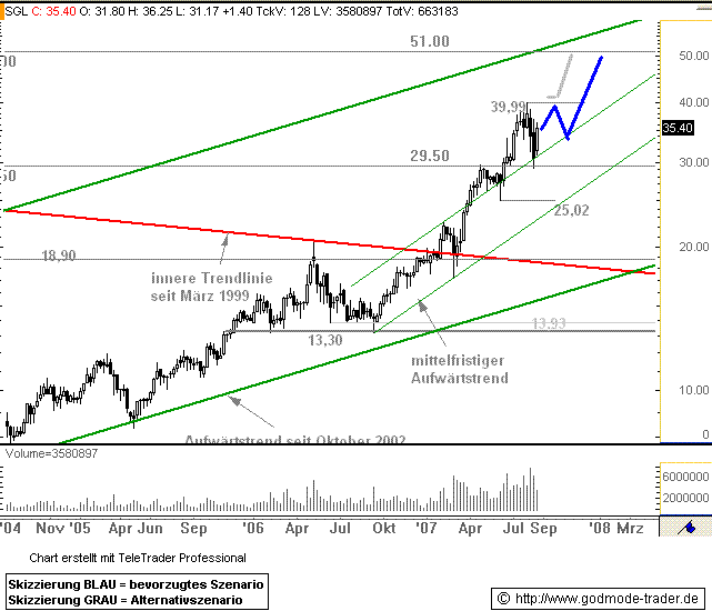 Dazu passt die Meldung, dass SGL Carbon einen Stiftungslehrstuhl für Carbon Composites an der renommierten TU München ins Leben gerufen hat und man im Süden ein Cluster „Leichtbau ohne Metall“ errichten will. Schon ab 2008 soll hier über Kohlenstofffaser-Verbundprodukte geforscht und gelehrt werden.