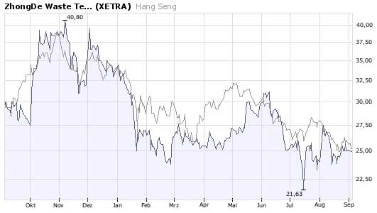 Das Unternehmen habe in den ersten 9 Monaten 2008 den Umsatz um stolze 51% auf 35,7 Mio. EUR steigern können. Der Nettogewinn sei um knapp 30% auf 18,7 Mio. EUR gestiegen, woraus sich eine unverändert stattliche Umsatzrendite von 52% errechne. Der Auftragseingang sei um 77% auf 53 Mio. EUR gestiegen. Für das Gesamtjahr erwarte Zefeng Chen, Chef und Gründer von ZhongDe Waste Technology, nun einen Umsatz von mehr als 50 Mio. EUR bei einer Nettomarge von 45%.