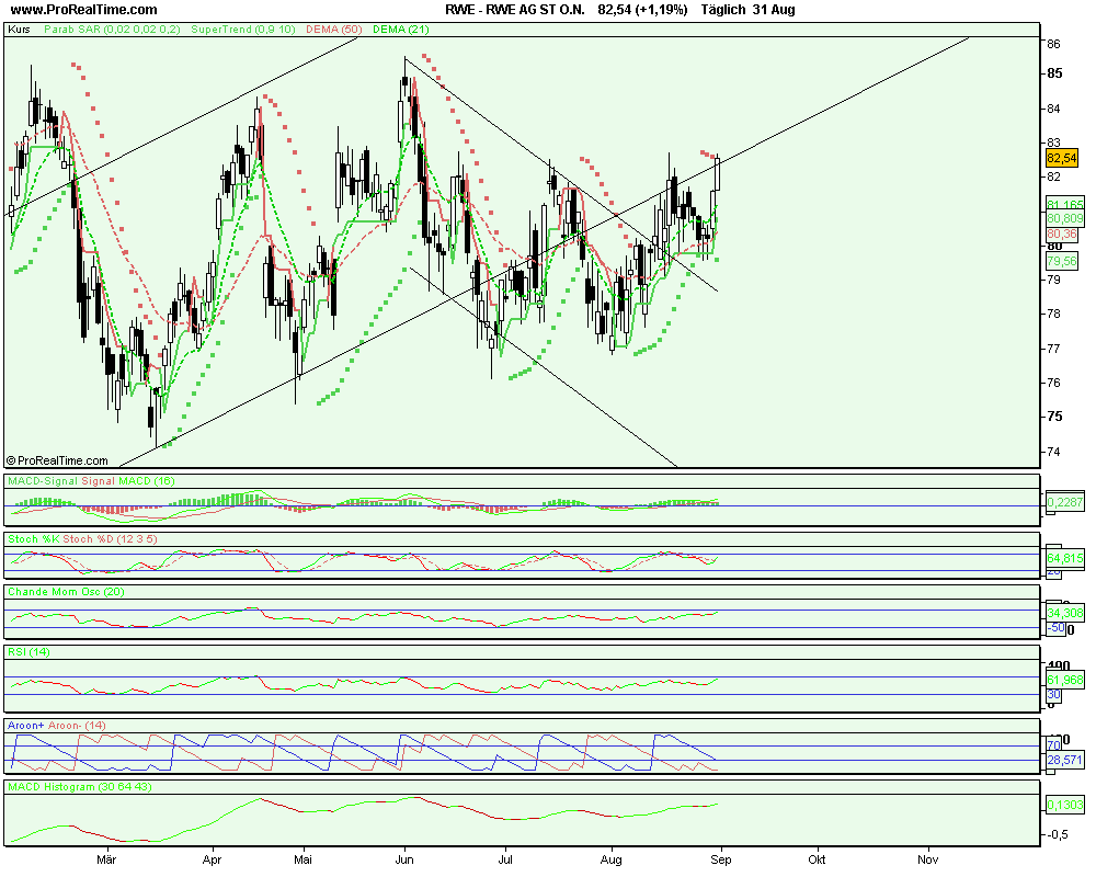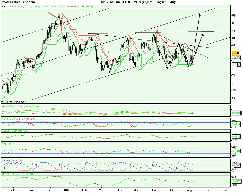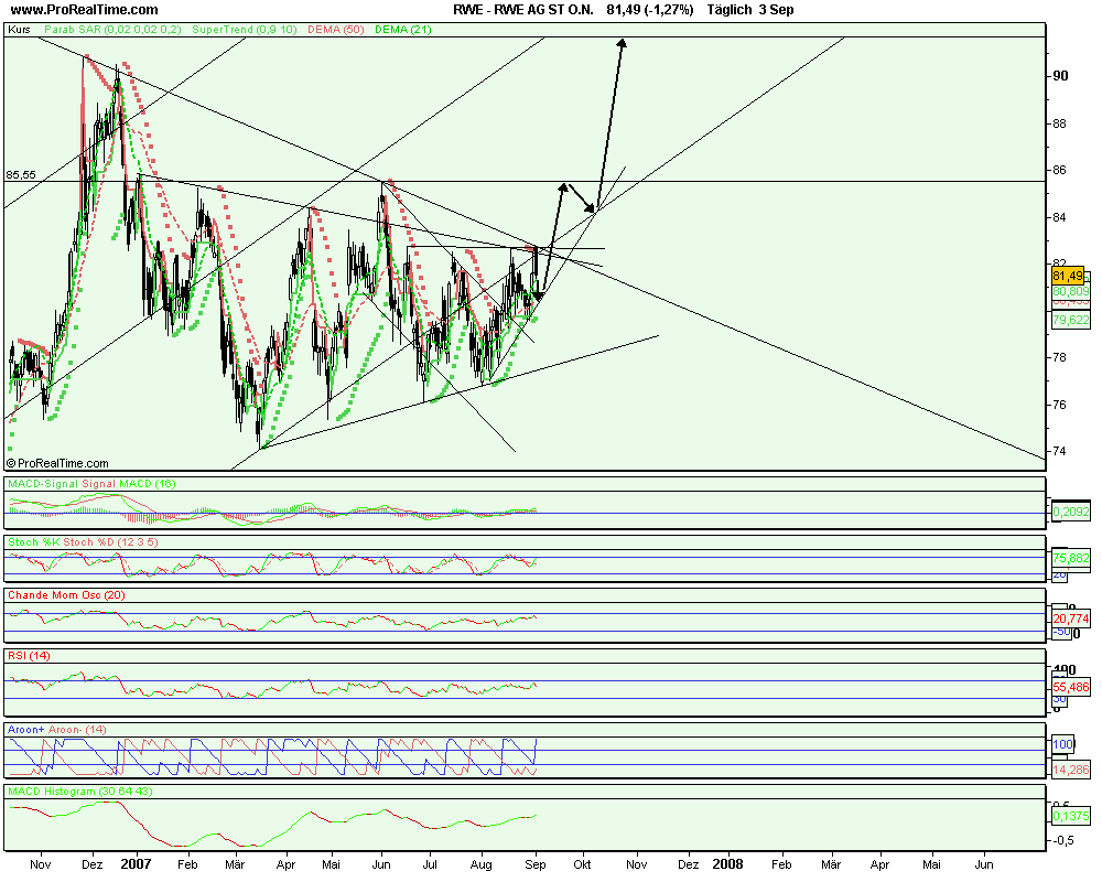 Hab mich mit meiner Kurseinschätzung und dem Nachholpotential wirklich wohl verkalkuliert,mein Optionsschein wird am 12.09. bereits bewertet,zwar ist der Schein im geld,aber der Gewinn wird wohl eher unspektakulär,muß also in einen Schein mit längerer Laufzeit switchen,denn dass RWE um die 20 % zulet in den nächsten Monaten,davon gehe ich weiterhin aus.