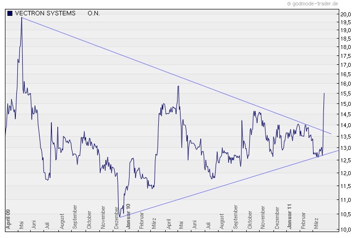 für mich seh ich da ein tolles billiges nischenunternehmen ,das eindeutig vom markt und pusherblättern übersehen wurde , obwohl vor der krise kursziele in unteren 3-stelligen bereich(vor dem 1:3 split) und mittlere 2-stellige kursziele ausgegeben wurde, siehe analystenmeldungsarchiv auf der vectron-seite . ja sogar 28 euro ziel vor 2 monaten und alle laufen wie die lemminge zu andere werten die schon gelaufen sind .