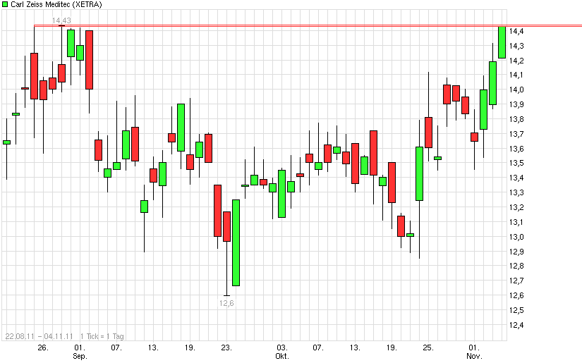 kursdiamanten.de 07.07.2011 :Liebe Leser, die Carl Zeiss-Aktie schoss am 06.07. von 14,76 auf heute 15,8 Euro. Das Chartsignal bei der Aktie wird heut vollzogen und kurzfristig wären noch Kurse von 16,50 Euro möglich. Danach ist wieder mit einer kurzen Korrektur zu rechnen..