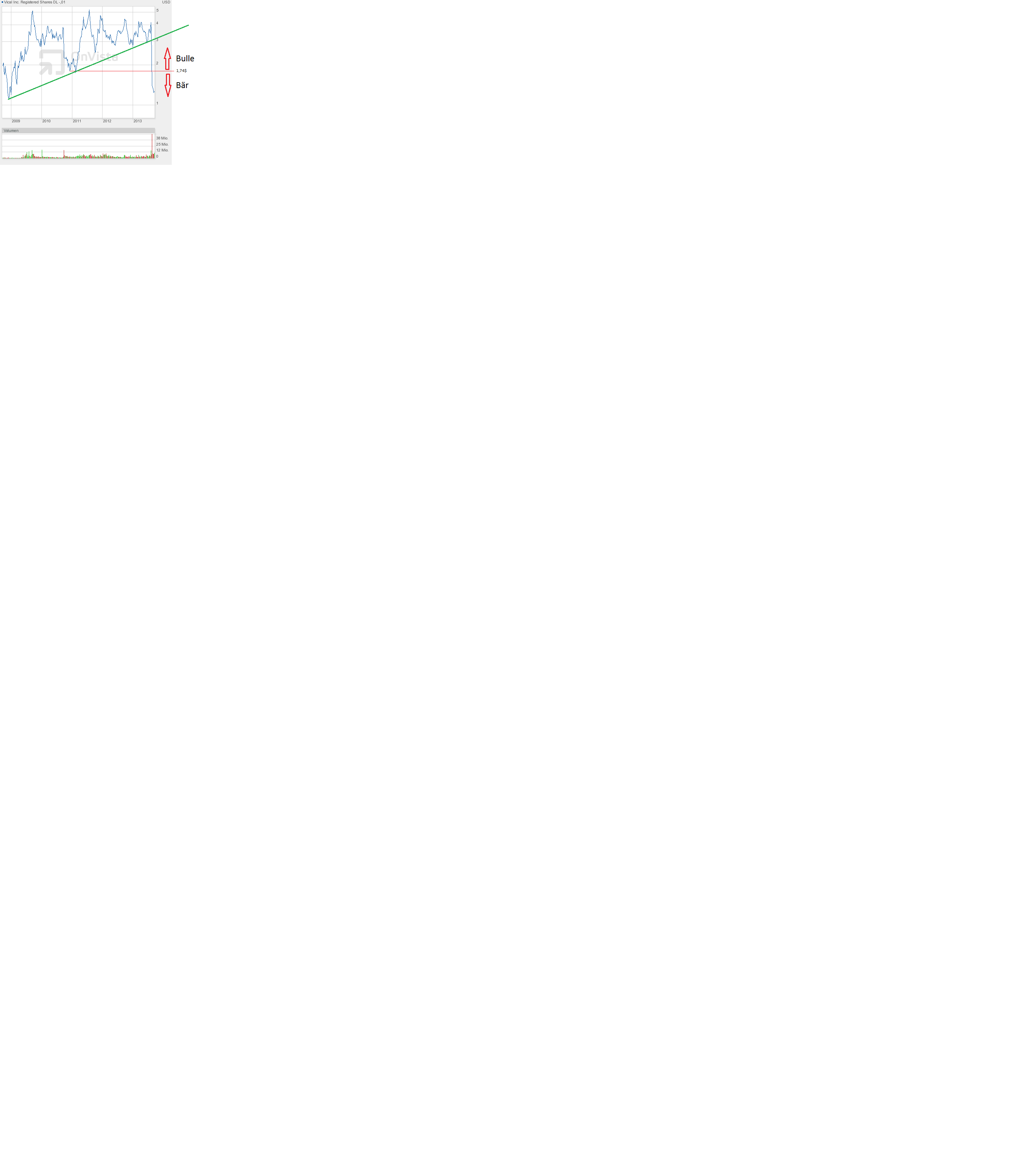 Da gestern, wie bereits am Montag, im Hoch die 1,28$ erreicht wurde, kann man nun auch nicht mehr behaupten, dass am Montag die orangene Abwärtstrendlinie getroffen wurde. Ganz genau konnte man die Linie aufgrund des langen Weges nicht einzeichnen. So sieht es aktuell so aus, dass gestern die Abwärtstrendlinie erreicht wurde. Heute wurde zudem 1,28$ noch nicht gesehen, sondern nur 1,26$. Das würde damit zahlenmäßig passen. Von der Nachrichtenlage her, könnte es auch passen, denn gegen 20Uhr meldet sich die FED zu Wort. Steigen daraufhin die Märkte, dann sehen wir den Ausbruch. Fallen die Märkte, dann haben wir mit 1,28$ einen brauchbaren Anhaltspunkt gefunden, denn die Aktie wird dann fallen, und die Trendlinie kann genau eingezeichnet werden. In circa 2 Stunden sollte man also mal reinschauen in die Börsenwelt. Es wird sich was bewegen. |