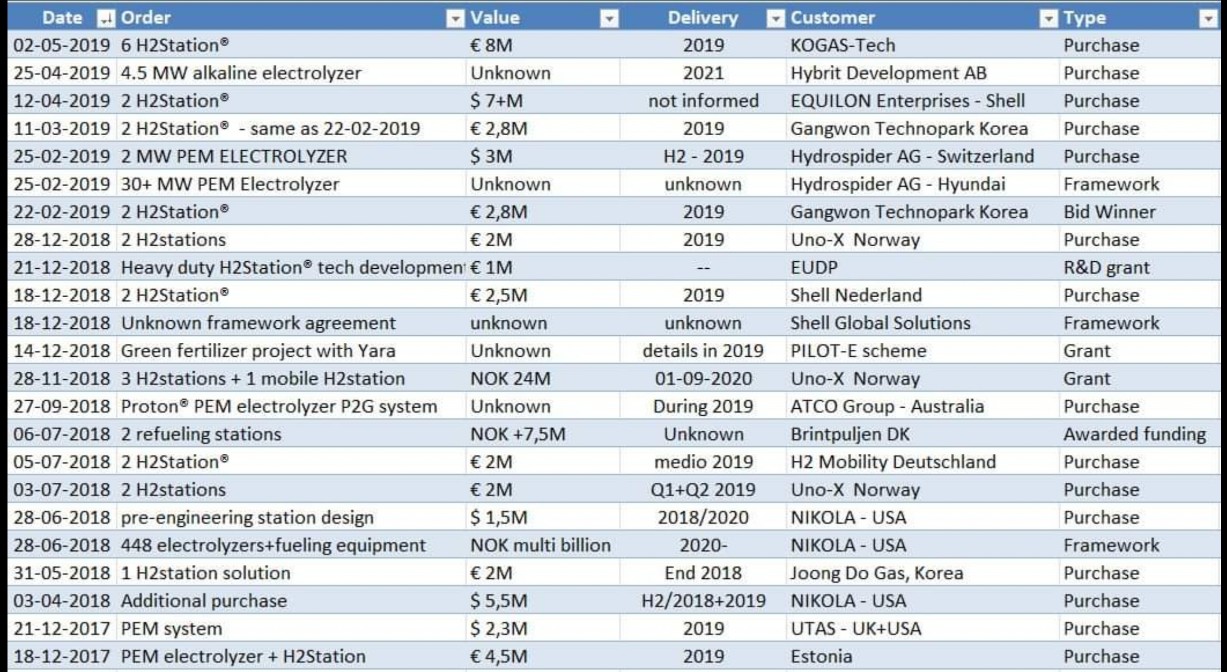 The value of the purchase orders is around EUR 8 million, and the H2Station