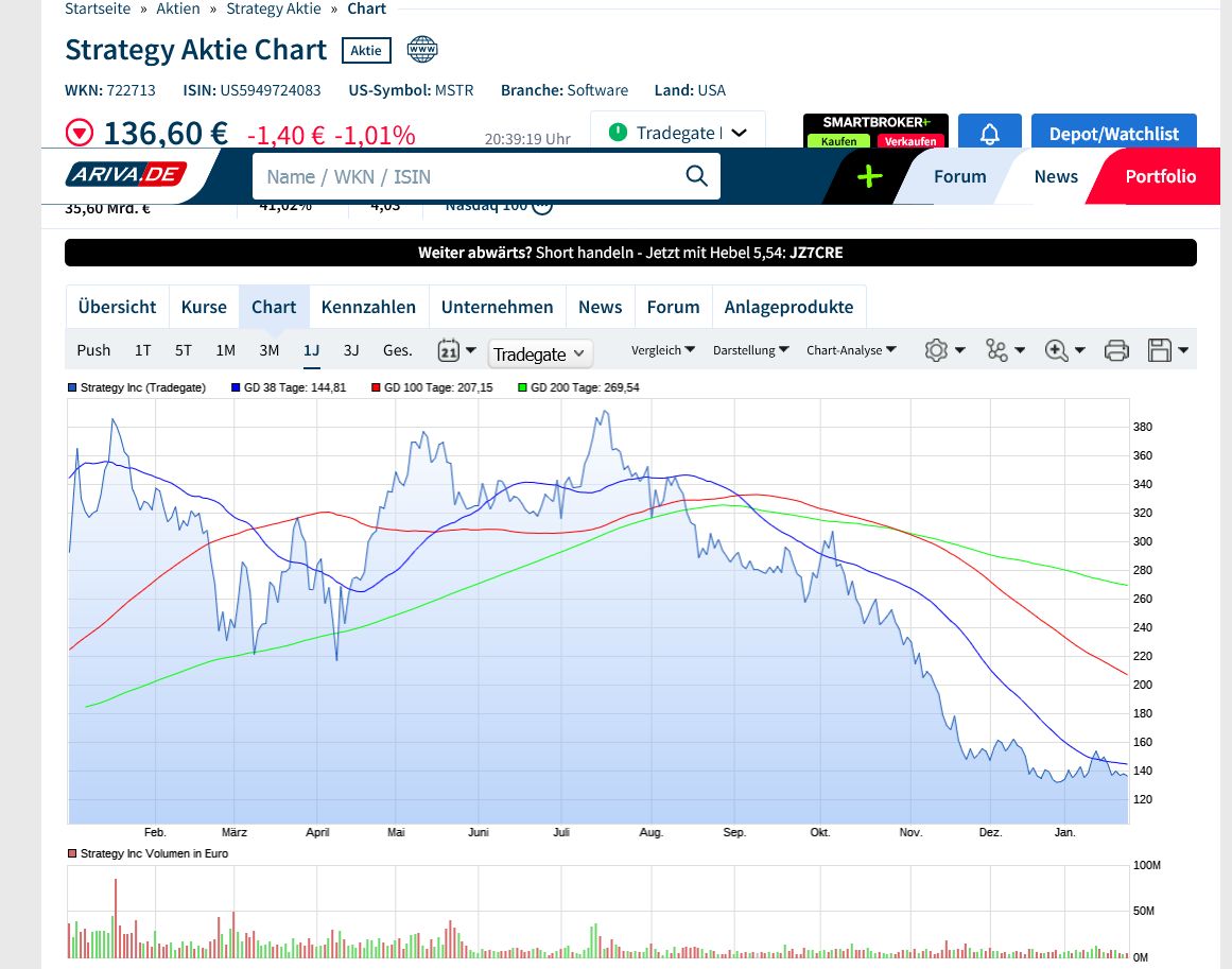 Wenn der Bitcoin auf 140.000 € steigt wird sich die Aktie von Strategy mehr als verdoppeln da bin ich mir ziemlich sicher , und das ist halt das Game hohe Gewinnchancen bringen auch hohe Risken mit sich