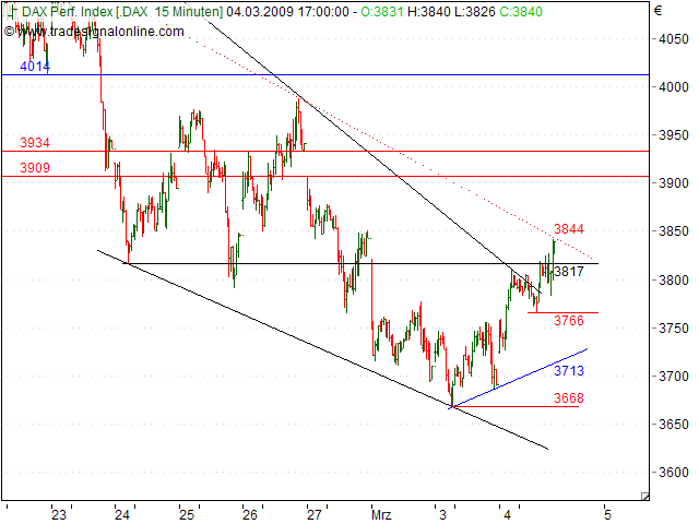 S&P500: 696,33 (Monatsschluss Februar 735) - ISIN US78378X1072 Wie Sie vielleicht wissen, halte ich sehr viel vom S&P500. Der S&P500 ist der Schrittmacher der Aktienmärkte, nicht so sehr der DOW JONES. Der DOW JONES ist dafür aber bekannter, das stimmt wohl. Es müssen leider neue große Warnungen ausgeprochen werden! In Anlehnung an den Beitrag vom 03.02.2009 (siehe unten) geht es um erhebliche neue Marktrisiken, die nun erst beginnen und nicht etwa schon absolviert sind. Es geht um eine dramatische Zuspitzung der Lage! Mit einem Monatsschluss unterhalb von 768 Punkten wurde Ende Februar 2009 ein riesiges Doppeltop vollendet! Das heißt: Normalerweise beginnt jetzt erst das richtige Drama! Mit dem Rückfall unter 768 per Monatsschluss aktiviert sich ein Verkaufssignal mit Ziel 415! Kurzfristig könnte sich der S&P500 zwar bei etwa 634,00 Punkten fangen und eine mehrwöchige Seitwärtsphase zwischen 634,00 und 768,00 absolvieren, gegen das große, frische Verkaufssignal dürfte dies aber kaum etwas ausrichten. Fazit: Stellen Sie sich besser auf weitere viele schwache Jahre ein. Halten beim 2. Test die 415 (Abstand vom 1. Tief 415 zum 2. Tief 415 etwa 7,5 Jahre), so könnte irgendwann in ferner Zukunft eine Bodenbildung Erfolg haben. Unterhalb von 400 Punkten wird dem US Aktienmarkt aber leider völlig das "Licht" ausgeknipst. Alternative: Der Monatsschlussanstieg über 1.200 bestätigt einen neuen langfristigen Bullenmarkt. TRADING: Achtung! Diese Art von langfristigen Signalen bedeutet nicht, dass die Aktienindizes nun auf einen Schlag sofort weiter fallen. Im Gegenteil, ein Rücklauf von unten an den SELL Trigger bei 768 ist sogar angezeigt. Tendenziell sollte man aber in eine Phase kurzfristig steigender Märkte hinein Aktienbestände strategisch weiter abbauen, denn das Risiko später weiter stark nachgebender Aktienindexnotierungen ist auf Sicht einiger Jahre sehr groß. Wer so was nicht glauben kann, sieht sich bitte den Nikkei225 an, der bereits im 20. Jahr abwärts läuft (S&P, DAX und Co erst im 9. Jahr)! Viele Grüße! Rocco Gräfe - Technischer Analyst und Trader bei GodmodeTrader.de ----------- Wer viel Geld hat, der kann spekulieren; wer wenig hat darf nicht spekulieren und wer überhaupt kein Geld hat muss spekulieren. |