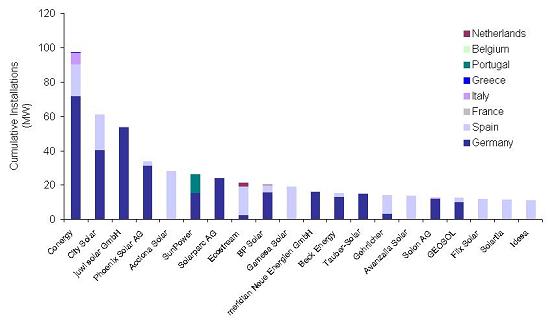 Leading European utilities--including EDF-EN, Iberdrola, Electrabel, Enel, and Edison--have become increasingly interested in PV. "Given their existing contacts with commercial and industrial clients, and a proven appetite for renewables, European utilities are well-positioned to enter the PV generation market as the sector transitions toward rooftop installations," says Tisdale. Independent power producers, led by Acciona Solar and AES, are looking to continue expanding their renewable portfolios to include solar PV moving beyond wind, solar CSP, small hydro power, and biomass.