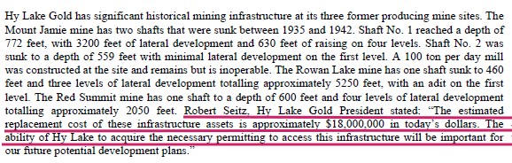 Die 100 USD pro Unze Gold Resorcen BEWERTUNG sind ein grobes Mass - heisst, dass dann für HY Lake 100 Mio als Marktkapitalisieung "FAIR" wären. Denke, Maba hat das schon öfters hier erläutert (zurückblättern und nachlesen !)