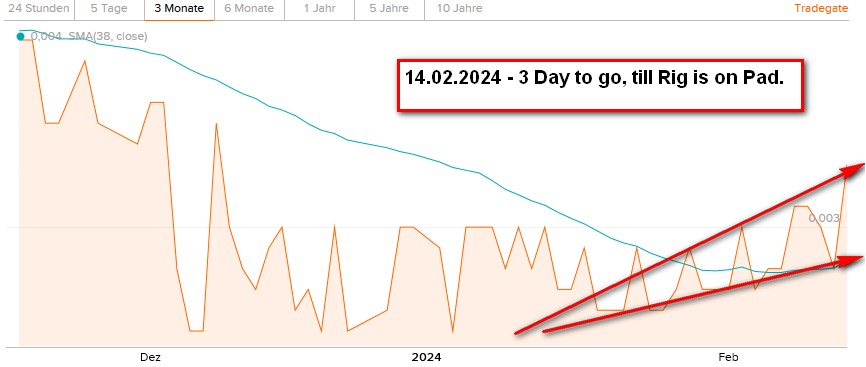 Wie zuletzt schon von mir geschrieben liegt mein Fokus nur noch auf die Bohrungen und ob die was finden, was förderbar ist und endlich mal nennenswert Kohle in die Kasse spült und den Kurs nach oben treibt.