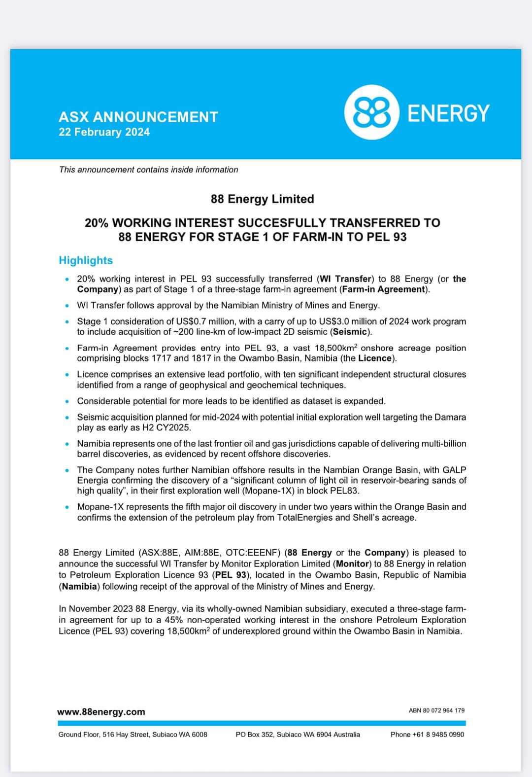 Einige Satellitenfotos des Bohrlochs Hickory-1 Discovery.