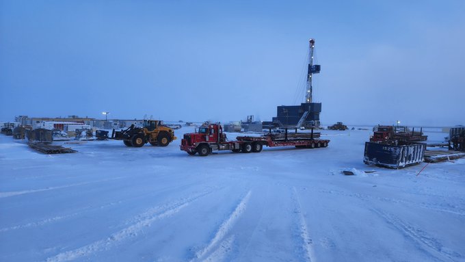 Das Sat-Bild unten zeigt ebenfalls einen Flare unten links. Ich bin mir nicht sicher, was der helle Fleck an der Zufahrtsstraße direkt unter dem kleinen schwarzen Kreis ist, aber der Fackelkamin würde aus Sicherheitsgründen niemals dort platziert werden. Die Durchflussleitungen vom BOP würden aus Sicherheitsgründen in einer geraden Linie verlaufen und von der Vorderseite der Bohranlage aus sichtbar sein. |