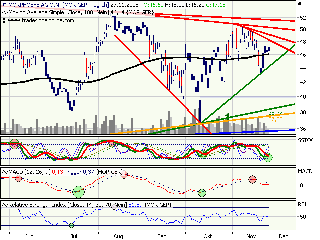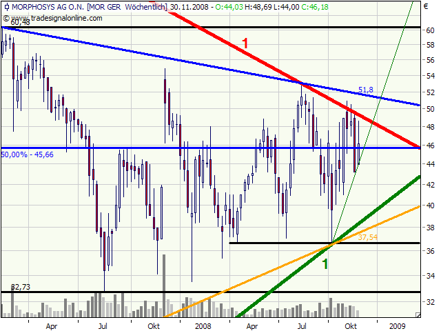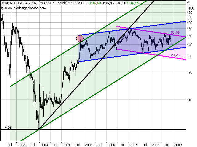 MORPHOSYS mit weiterem Potential bis...Datum 26.11.2008 - Uhrzeit 10:14 (© BörseGo AG 2000-2008, Autor: Berteit Rene, Technischer Analyst, © GodmodeTrader - http://www.godmode-trader.de/)