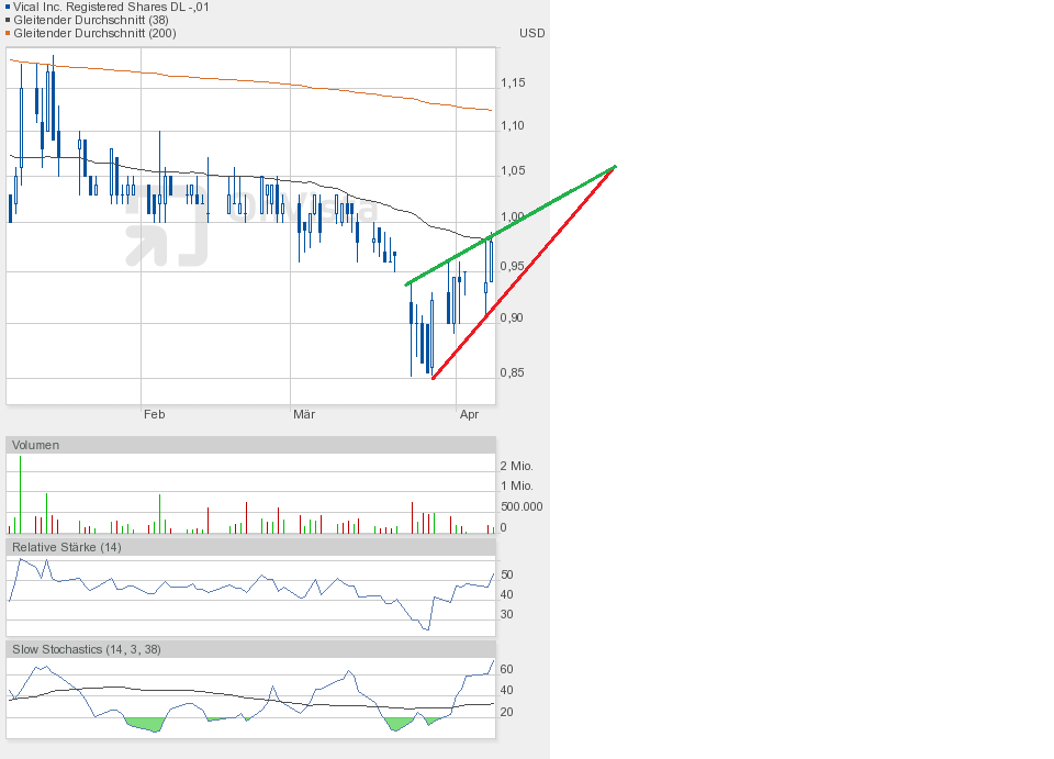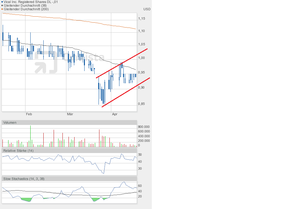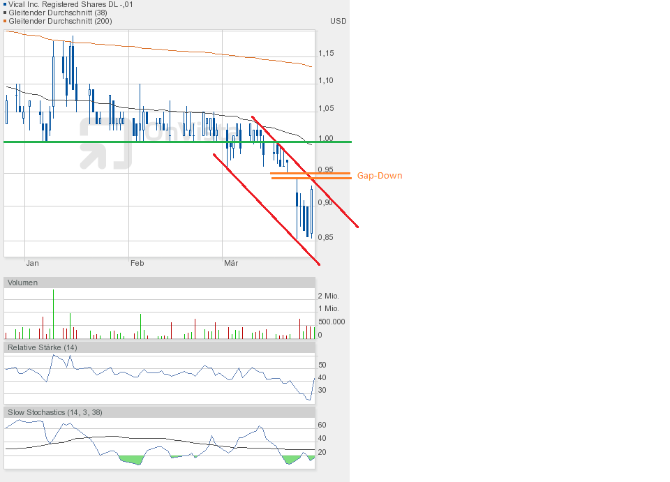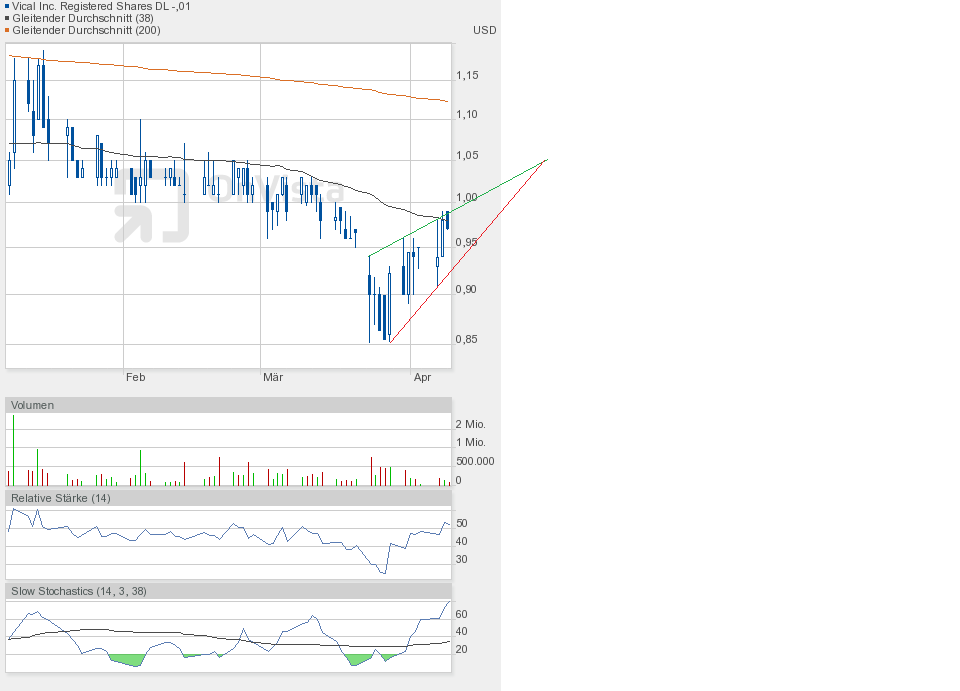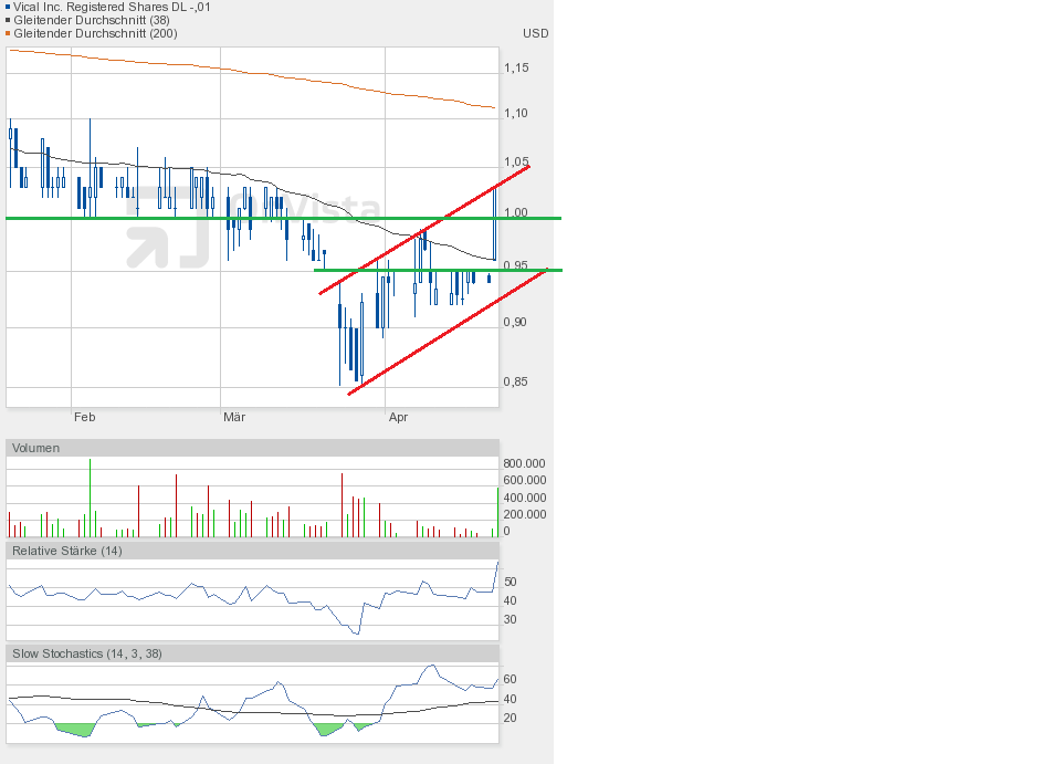 Mit den guten vorklinischen CMV-Daten war der Grundstein für eine ordentliche Tagesrallye gelegt. Schlusskurs 1,03$, +10%. Charttechnisch sind nun gleich drei Barrieren gefallen. Der Widerstand bei 0,95$, die 38-Tage-Linie und was das beste ist - die 1-Dollar-Marke ist zurück erobert, wobei auch das Volumen wie immer bei Ausbrüchen deutlich erhöht war, mit knapp 600000 Aktien. Und damit ist ein wichtiger Nebeneffekt eingetreten. Wie Rotband27 in Beitrag #617 geschrieben hatte, würde im Falle von 30 aufeinanderfolgenden Handelstagen und einem Kurs unter 1$, ein Delisting in Frage kommen. Die 30 Tage unter 1$ wären im Falle von Vical an diesem Freitag, also in drei Tagen, erreicht worden. Somit können wir nun wieder durchatmen. Sollte Vical wieder unter 1$ fallen, dann begänne die Zeit wieder von vorn an zu laufen. Aber zurück zum Chartbild. Mit 1,03$ hat die Aktie nun die Oberbegrenzung des Trendkanals erreicht. Ein Ausbruch nach oben würde meiner Ansicht nach zwar schön aussehen, dürfte aber einer Übertreibung gleichen, was zu einem genauso schnellen Abverkauf führen dürfte. Besser fände ich ein mehrtägiges Verharren knapp über der 1-Dollar-Marke mit anschließendem Hochhangeln zur 200-Tage-Linie. |