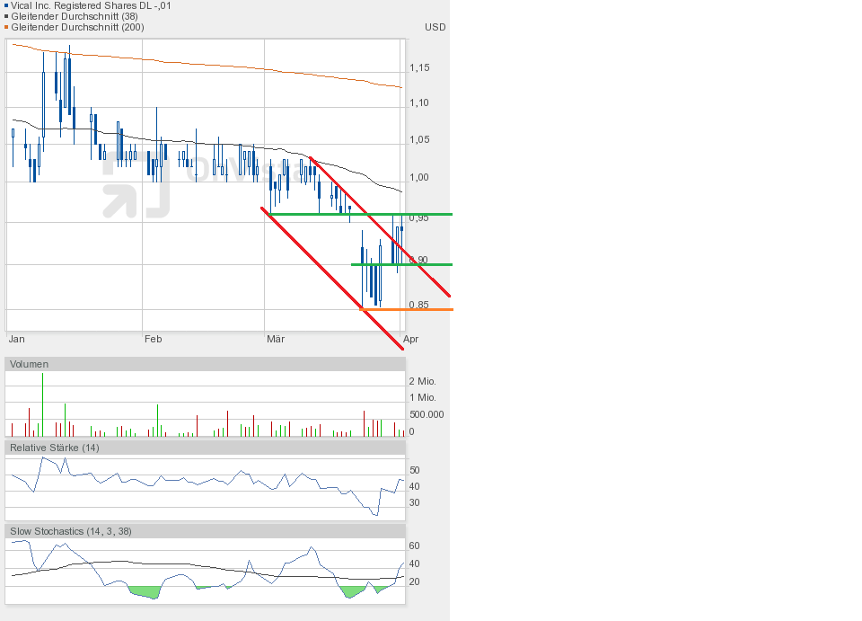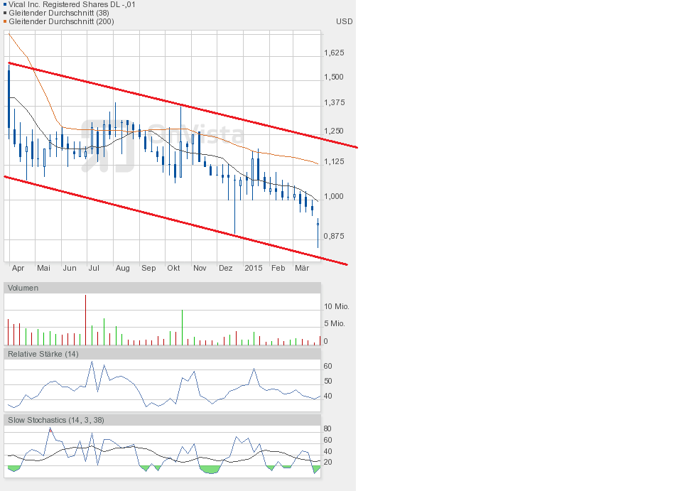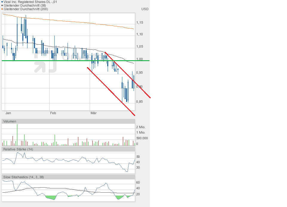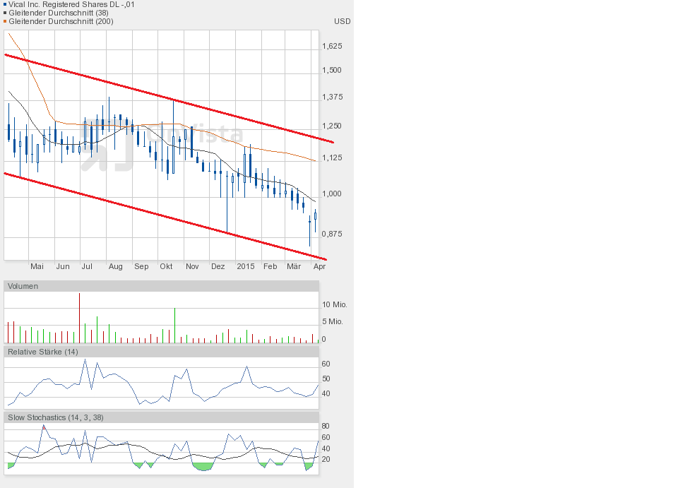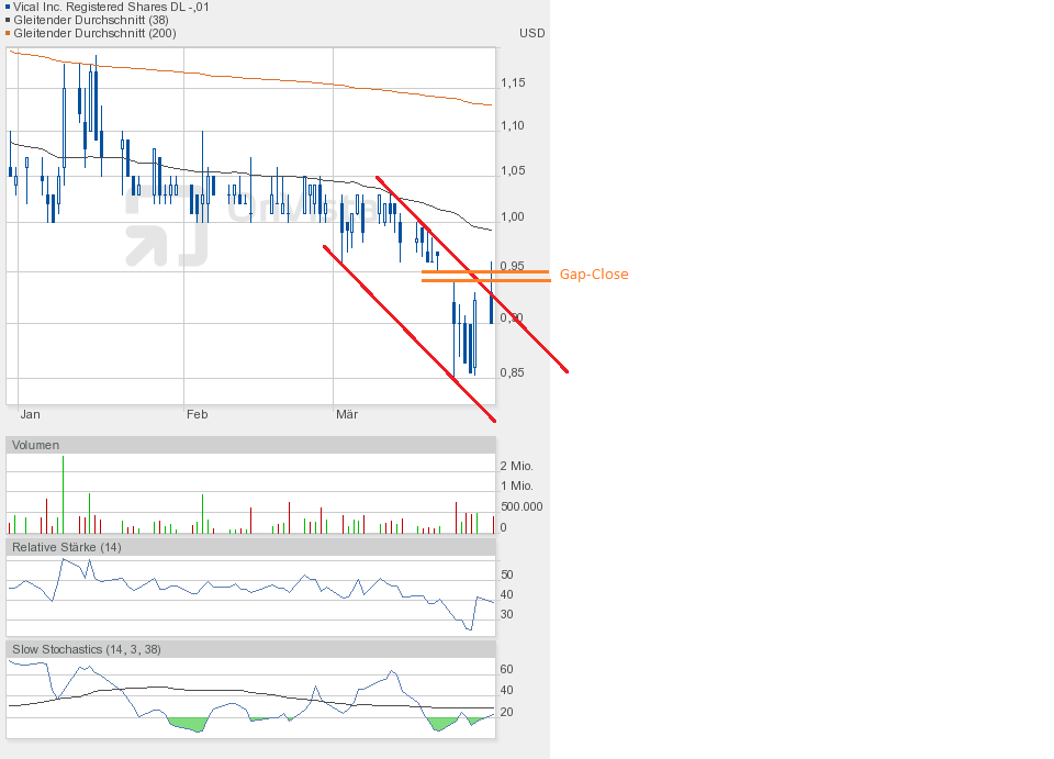 Mit den guten vorklinischen CMV-Daten war der Grundstein für eine ordentliche Tagesrallye gelegt. Schlusskurs 1,03$, +10%. Charttechnisch sind nun gleich drei Barrieren gefallen. Der Widerstand bei 0,95$, die 38-Tage-Linie und was das beste ist - die 1-Dollar-Marke ist zurück erobert, wobei auch das Volumen wie immer bei Ausbrüchen deutlich erhöht war, mit knapp 600000 Aktien. Und damit ist ein wichtiger Nebeneffekt eingetreten. Wie Rotband27 in Beitrag #617 geschrieben hatte, würde im Falle von 30 aufeinanderfolgenden Handelstagen und einem Kurs unter 1$, ein Delisting in Frage kommen. Die 30 Tage unter 1$ wären im Falle von Vical an diesem Freitag, also in drei Tagen, erreicht worden. Somit können wir nun wieder durchatmen. Sollte Vical wieder unter 1$ fallen, dann begänne die Zeit wieder von vorn an zu laufen. Aber zurück zum Chartbild. Mit 1,03$ hat die Aktie nun die Oberbegrenzung des Trendkanals erreicht. Ein Ausbruch nach oben würde meiner Ansicht nach zwar schön aussehen, dürfte aber einer Übertreibung gleichen, was zu einem genauso schnellen Abverkauf führen dürfte. Besser fände ich ein mehrtägiges Verharren knapp über der 1-Dollar-Marke mit anschließendem Hochhangeln zur 200-Tage-Linie. |