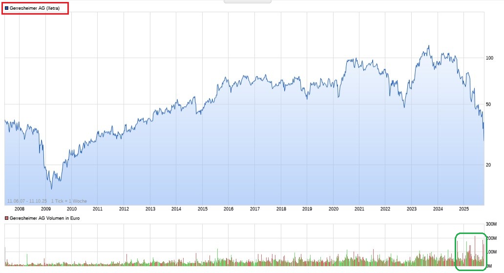 Besteht die Gefahr eines anhaltenden Ausverkaufs? Hmm, ich würde sagen, diese Gefahr ist überschaubar. Die BaFin-Untersuchung der Bilanzierungspraktiken bezieht sich auf die Bilanzierung nicht ausgelieferter Waren im Jahr 2024, die erst 2025 ausgeliefert wurden. Gerresheimer ordnete die Waren bereits den Kunden zu, obwohl diese die Ware noch nicht abgerufen hatten. Das ist nach Meinung der BaFin nicht zulässig. Gerresheimer gab bekannt, dass dies ein Umsatzvolumen im niedrigen zweistelligen Millionenbereich betrifft, also rund 1% des Konzernumsatzes. das dürfte also überschaubar bleiben, wenngleich negative Schlagzeilen in einer solchen Sache immer wieder Verkaufsdruck erzeugen.