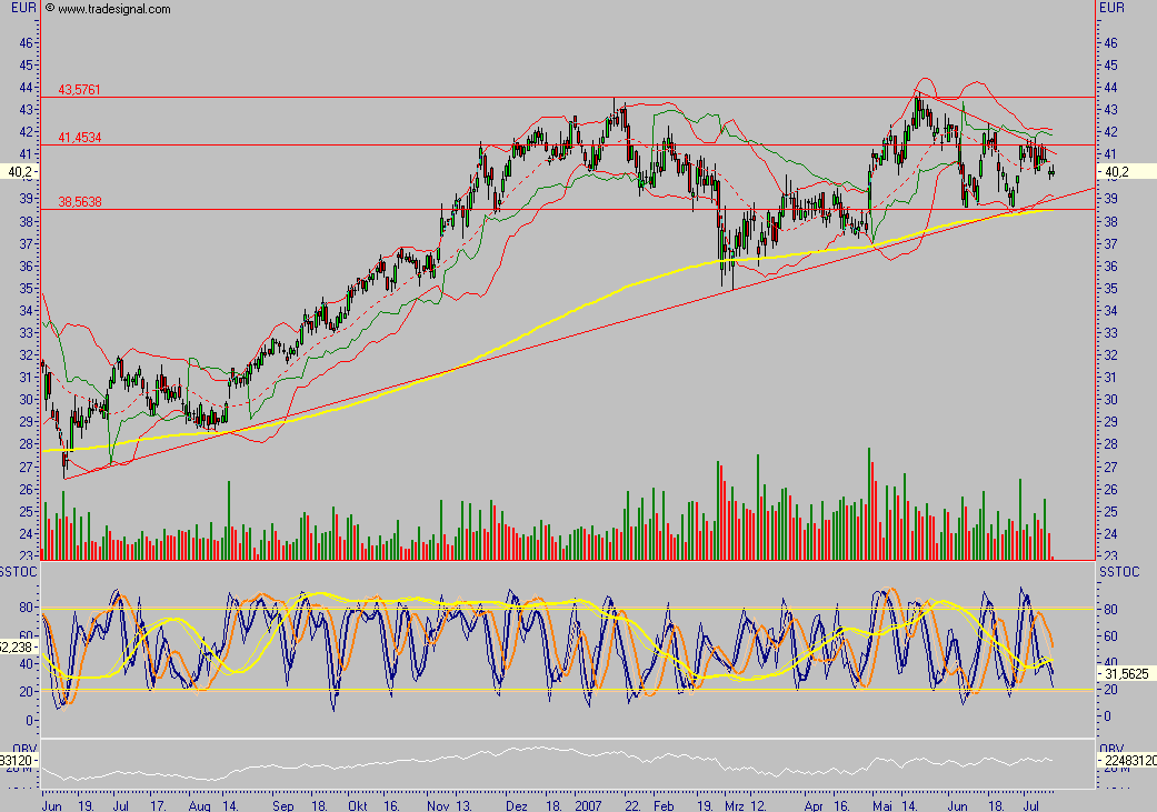 Aktuell sei die Aktie auf der Basis der Erwartungen für 2008 mit dem 4,3-fachen EV/EBITDA bewertet, wohingegen der Mittelwert der Branche aktuell bei 6,9 liege. Dieser Gedanke würde Kurse von 64 EUR rechtfertigen. Bei einer Bewertung im Zyklusmittel würden sich Kurse von 51 EUR ableiten lassen. Das neue Kursziel der Analysten von 46 EUR, nach zuvor 35 EUR, beinhalte noch einen Abschlag auf diesen Fair Value, da das aktuelle Management noch einen fehlenden Track-record bei der Integration von Akquisitionen habe.